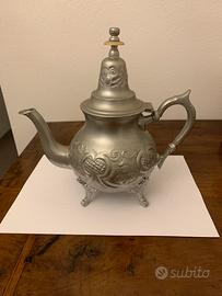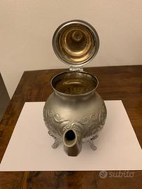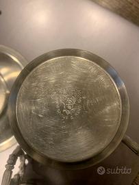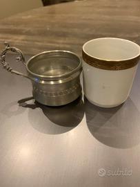 Due tazzine con portatazzina e zuccheriera in peltro Una cafettiera in peltro Come da foto