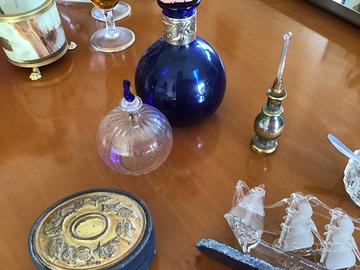 Oggetti vari da collezione. Bottiglia in vetro Murano e bomboniere in vetro Murano. Vendo per inutilizzo. Accetto offerte il,prezzo é simbolico, accetto offerte per ogni singolo pezzo o per il blocco intero