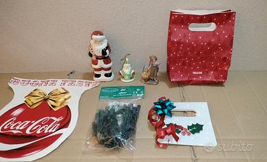 oggetti tema festività natalizie per addobbo albero di natale o presepe si tratta di un grande adesivo stickers decalcomania pubblicitario coca cola vintage da collezione con scritta buone feste davvero bello e particolare e altri quattro oggetti misti tra cui un kit di luci nuove mai aperte ancora nella propria custodia originale di serie il tutto esattamente come da immagini fotografiche riportate sull'annuncio parte integrante della descrizione di ogni singolo articolo proposto