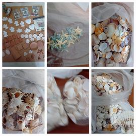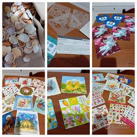 Conchiglie, tovaglioli, oggettini vari per fare deocupage.