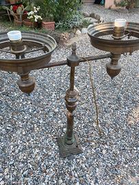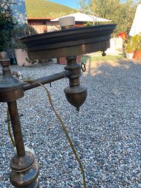 Lampadario in ottone e portalampada in ceramica per saloni rustici o ristoranti tipici