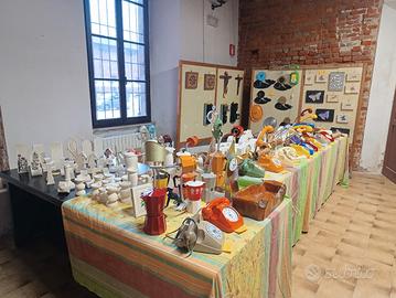 oggettistica in pietra leccese, telefoni trasformati in lampade, caffettiera trasformate in lampade ecc.