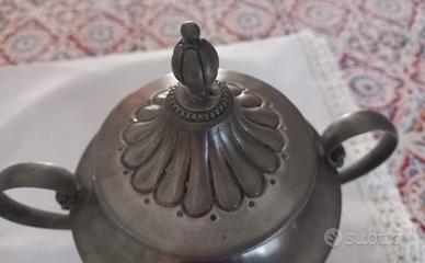 pregevole lavorazione mis.diam7 h.tot 17, larg.manici compresi 17 in peltro Metalars ,marchiato, elegante lavorazione