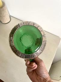 Vetro soffiato verde e argento 800 intrecciato .Vintage, anni '80.