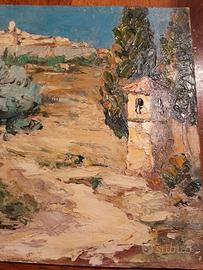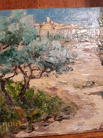 Bel dipinto ad olio di L. Millet intitolato, come da retro "St. Paul de Vence". La firma si legge in calce all'opera, a sinistra. Dimensioni: 22,1x26,4.