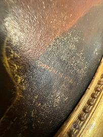 Elegante dipinto antico olio su rame, databile alla seconda metà del XIX secolo (circa 1870-1900). Raffigura un ritratto femminile di ottima qualità pittorica, firmato Campsales F.M. (firma leggibile in basso). Il rame come supporto è caratteristico delle opere di pregio, per via della superficie perfettamente liscia e della lunga conservazione. L'opera presenta una patina antica originale e un craquelure naturale tipico dell'olio su metallo. Nessuna rottura. La cornice ovale in legno dorato, coeva, è inclusa e aggiunge valore decorativo. Dimensioni Cornice: 61 × 50 cm Dipinto (rame): circa 45 x 35 cm