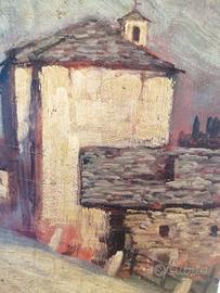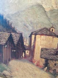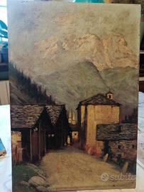 Vendo quadro dipinto olio su tavola di legno del paesaggio montano Riva Valdobbia in Piemonte, pittore Carlo Moscardini, misura cm. 21x30, buone condizioni, spedizione in tutta Italia