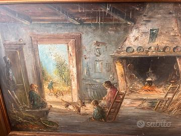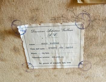 Olio su tela Mario Fattori Interno Camino 70x100 certificato. Quotazione ufficiale. Lievi difetti in due punti. Quadro autentico.