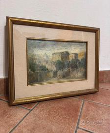 Olio su tela paesaggio Paesaggio h 32 cm l 42 cm alla cornice condizioni come da foto
