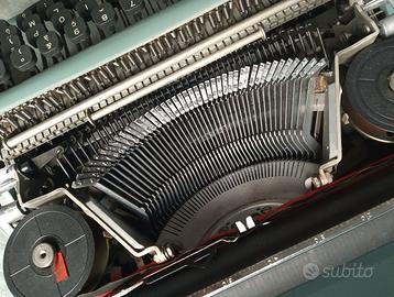 Macchina da scrivere Olivetti Lettera 22 seconda serie, anno 1955. Progettata da Giuseppe Beccio e disegnata da Marcello Nizzoli. Entrata nelle collezioni permanenti del MoMa – Museo of Modern Art di Nuova York , e premiata con il Compasso d’Oro nel 1954. Articolo originale e autentico, in perfetto stato sia di meccanica che di scocca, con pittura originale senza segni di usura o graffi, (solo un lievissimo segno a bordo scocca come da foto evidenziata). N° di serie 240975, Completa di borsa originale, nonostante l’epoca trascorsa in ottime condizioni. Ulteriori foto specifiche a richiesta.