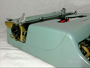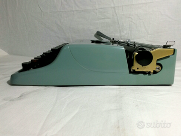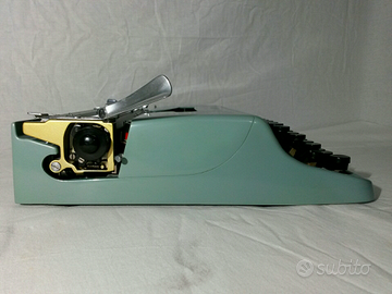 Pochissimi esemplari prodotti, introvabile edizione speciale limitata all'anno 1959, con fianchetti e particolari anodizzati bellissimi. È una delle pochissime macchine da scrivere Lettera22 di questa serie limitatissima, commemorativa della storica fabbrica Olivetti di Agliè (Torino), "sopravvissute" ed arrivate ai giorni nostri; qui si costruiva solo esclusivamente la Lettera 22. Come si può ammirare dalle foto, questo esemplare è stato curato nei minimi dettagli, tanto nella verniciatura, quanto nei particolari del carrello; questo è il risultato di una piccola produzione in cui l'alluminio subì un processo di anodizzazione per distinguersi dalla classica produzione. È tenuta in modo impeccabile, bellissima e funzionante come appena uscita di fabbrica e cosa ancora più importante originale al 100%, non riverniciata, nè quantomeno ritoccata. In una splendida tonalità di azzurro / verde vivo lucido e senza alcun difetto, immacolata. Come nuova in tutto per tutto, pulita e lubrificata dove serve.