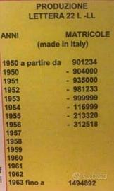 Macchina da scrivere Olivetti lettera 22 in ottime condizioni. Matricola 901812, una delle prime 600 macchine da scrivere prodotte, anno 1950, come tabella allegata.