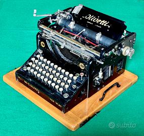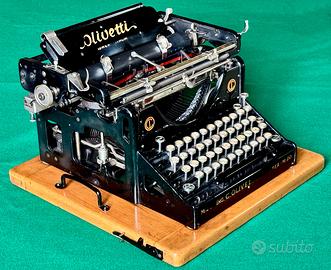 Magnifico esemplare della M20 prima serie (la più rara). Anno di produzione 1923. È davvero in ottime condizioni, considerato che ha 103 anni. Completa di tutti i suoi pezzi e del coperchio in ferro ormai difficile da trovare. Nichelature e decalcomanie assolutamente originali. Piccoli ritocchi dell'epoca. La macchina è stata solo revisionata, pulita e lubrificata. La base in legno è stata restaurata mantenendo i segni del tempo. Viene fornita anche una copia del manuale di istruzioni originale Olivetti. Preferisco il ritiro a Firenze ma posso spedire con corriere espresso. Finché vedete l'annuncio la macchina è disponibile.