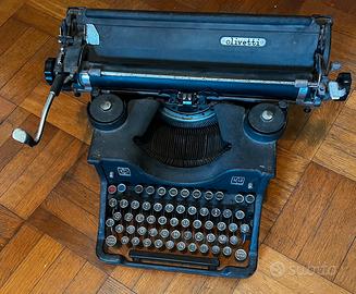 Macchina da scrivere Olivetti M40 originale, modello storico italiano anni ’40. Struttura solida in metallo, tastiera completa layout italiano. Condizioni: buone, con normali segni del tempo (come da foto). Meccanica funzionante: tasti, carrello e ritorno operativi. Necessita di una pulizia generale: presente una leggera ossidazione superficiale, facilmente removibile. Ideale sia per utilizzo che per arredamento vintage/industrial. Perfetta per collezionisti, studi creativi, scenografia o design d’interni. Caratteristiche: •Modello: Olivetti M40 •Periodo: anni ’40 circa •Tastiera italiana completa •Corpo in metallo •Colore nero originale Consegna: Ritiro a mano Posso inviare video della macchina