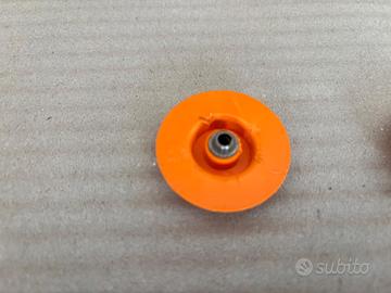 Macchina da scrivere Olivetti Valentine: dischetti serra bobine. Dei due dischetti, uno è perfetto, il secondo, come da fotografie, presenta evidenti graffi sul cappello e segni sulla parte inferiore non visibile in quanto nascosta al montaggio. Per il resto perfettamente funzionanti e pronti per il montaggio. La vendita si riferisce alla coppia.
