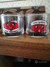 Vendo 4 bicchieri pubblicitari da bibita con varie defiche e decori su vetro