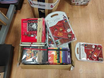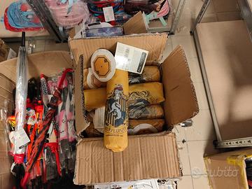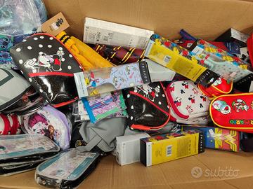 - N.11 scatole, diverse dimensioni, contenenti ombrelli assortiti (grandi e piccoli), - N.9 scatole, contenenti ombrelli assortiti (grandi e piccoli), N.200 pezzi circa - N.130 pezzi circa tra articoli scolastici e di cancelleria, tra cui zaini, astucci, diari, block notes e materiale vario - N.1 scatolone misto contenente N.50 pezzi circa tra articoli beauty e cancelleria - N.2 scaffali metallici e N.2 espositori da terra su cui erano riposti i beni Gli articoli presentano i seguenti marchi: DISNEY, MARVEL, HARRY POTTER, DC COMICS, STAR WARS In vendita all'asta il 30/04/2026. Per informazioni contattare Mercury Auctions