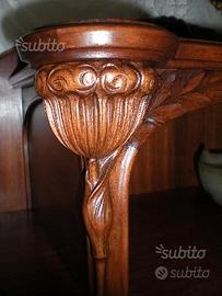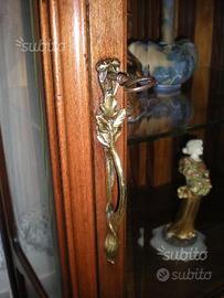 Importante vetrina " Camille Gauthier " in legno di noce biondo finemente intagliato ed intarsiato , di smaccato gusto Art Nouveau.