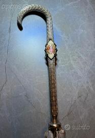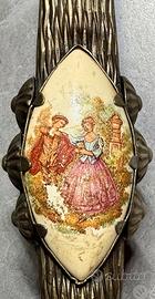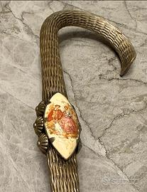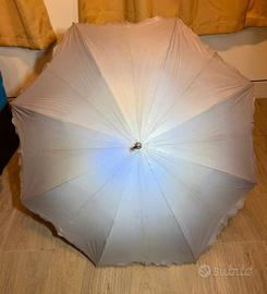 Antico e raro ombrello francese databile 1800 uno degli ultimi esemplari in puro stile roccocò, con manico d'argento e doppio diadema raffigurante il dipinto "Coppia felice" del pittore "Jean Honorè Fragonard".