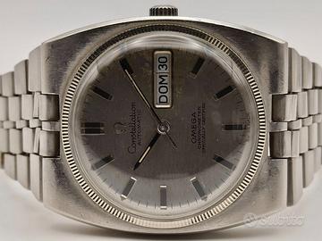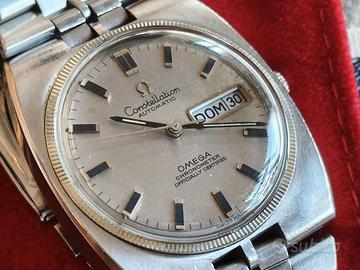 Omega Modello (Orologio) Constellation Day-Date Numero di referenza 168.045 Carica Automatico Materiale della cassa Oro/Acciaio Materiale cinturino Acciaio Anno di produzione 1970 (Anno approssimativo) Condizione Usato (Ottimo) Corredo Senza scatola originale né documenti originali Genere Orologio da uomo/Unisex Luogo italia, viareggio Disponibilità L'articolo è in magazzino Calibro Carica Automatico Calibro/Meccanismo 751 Numero delle pietre 24 Cassa Materiale della cassa Oro/Acciaio Diametro 36 x 40 mm Impermeabile Non impermeabile Materiale lunetta Oro bianco Vetro Plexiglas Quadrante Argento Numeri sul quadrante Barrette Cinturino Materiale cinturino Acciaio Colore cinturino Acciaio Chiusura Déployante Materiale chiusura Acciaio Funzioni Data, Indicatore del giorno settimanale Altro Ulteriori dettagli Secondi centrali Sicurezza dei prodotti Visualizza le informazioni Descrizione Omega Constellation - Lunetta in oro bianco Data giornaliera -= Automatico =- -= Ottime condizioni = Movimento Automatico 751 Cassa Acciaio inossidabile opaco Diametro della cassa Circa 36,00 mm Vetro Plastica Bracciale Bracciale in acciaio di circa 19 cm