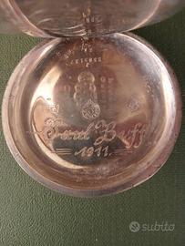 Orologio da tasca Omega Grand Prix Paris 1900 posizione corona alla carrettiera argento 800 funzionante