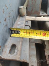 omega in acciaio verniciato grigio usato ma perfettamente conservato e pulito .larghezza 16 cm altezza 12 cm lunghezza 557cm pezzi 25 .peso stimato 25 /30 kg ogni pezzo.spessore lamiera 3 mm circa.da utilizzare come supporto di appoggio per copertura o come soppalco .