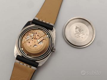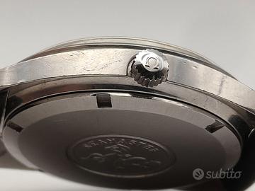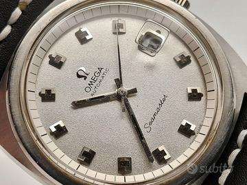 Omega Modello (Orologio) Seamaster Numero di referenza 166.065 Codice del commerciante OMEGA-Seamaster 565-3111 Carica Automatico Materiale della cassa Acciaio Materiale cinturino Pelle Anno di produzione 1970 (Anno approssimativo) Condizione Usato (Buono) Corredo Senza scatola originale né documenti originali Genere Orologio da uomo/Unisex Luogo italia,viareggio Disponibilità L'articolo è in magazzino Calibro Carica Automatico Calibro/Meccanismo 565 Oscillazione 19800 A/h Cassa Materiale della cassa Acciaio Diametro 36 mm Impermeabile Non impermeabile Materiale lunetta Acciaio Vetro Plexiglas Quadrante Argento Numeri sul quadrante Barrette Cinturino Materiale cinturino Pelle Colore cinturino Nero Chiusura Chiusura ad ardiglione Materiale chiusura Acciaio Funzioni Dati Altro Descrizione Omega Seamaster Date Ref. 166.065 con movimento Calibro 565. Questo modello da 36 mm in acciaio inossidabile presenta un classico quadrante argentato e datario.