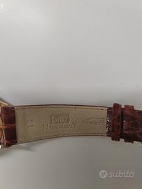 Orologio Omega vintage, funzionante. Quadrante e cassa in oro giallo, cinturino in pelle di coccodrillo.
