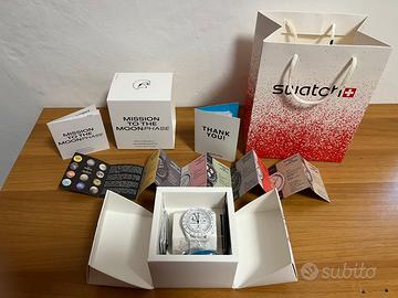 Vendo iconico Omega x Swatch Moonswatch "Mission to the Moonphase", nella ricercatissima colorazione Full White con l'amatissimo Snoopy sul disco delle fasi lunari