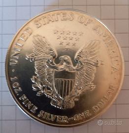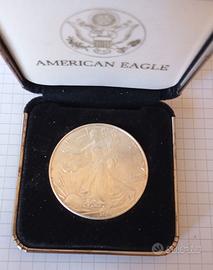 UN dollaro usa del 1999, in argento e confezione originale. Nessun segno evidente di usura è in mio possesso dall'anno del conio, pertanto non è circolato. La scatola in velluto e bordatura in ferro presenta alcune tracce di ruggine sul lato sinistro. No permute e no perditempo.