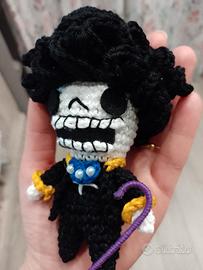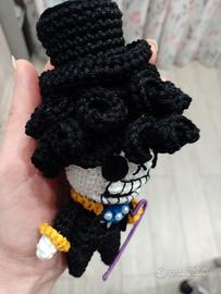 amigurumi di Brook, di One Piece. Il personaggio è interamente fatto a mano all'uncinetto in cotone 100% ed e' alto circa 16cm. È possibile realizzare altri personaggi amigurumi su richiesta 👍😀. contattami per qualsiasi info🙋