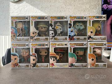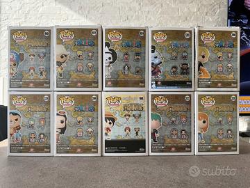 Ciao a tutti, Vendo la mia ciurma completa Funko Pop di One Piece. Come potete vedere tutte insieme sono molto belle. Vendo solo il lotto intero, non le vendo singolarmente e non faccio spedizione perché altrimenti il corriere potrebbe rovinarle. TUTTE le statuine sono perfette, cosi come le scatole con la sola eccezione della scatola di Vinsmoke Sanji che mi è arrivata rovinata purtroppo, nell'annuncio c'è una foto della scatola di Sanji che chiarisce la sua situazione. Ecco la lista completa di questo lotto: - TONY YONY CHOPPER 99 - USOPP 401 - BONEKICHI 924 - JIMBE 1265 - VINSOMOKE SANJI 398 - FRANKY 329 - NICO ROBIN 399 - MONKEY D. LUFFY 98 - RORONOA ZORO 327 - NAMI 328