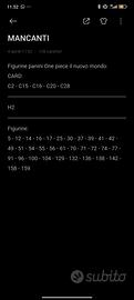 One piece il nuovo mondo figurine panini Disponibili vedi foto foto 1 doppioni foto 2 mancanti X scambio mancanti vedi foto Figurine 0,15€ Card 0,40€