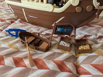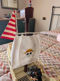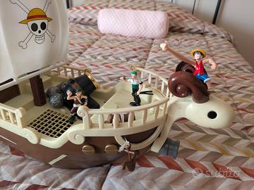 Nave Going Merry di One Piece, vintage anni 90 primi 2000. Il veliero dei pirati One Piece All’arrembaggio Gig. Condizioni perfette dei pezzi, adesivi un po' scollati. Personaggi perfetti. Cannone e ancora funzionanti. Non ho la scatola ma regalo i 3 poster wanted .