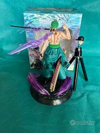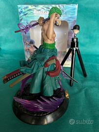 Action Figure Roronoa Zoro con spade amovibili e head con bandana nera di ricambio. Produzione 2020 Made in China. No spedizione. Possibile accordo consegna area Bologna e limitrofe.