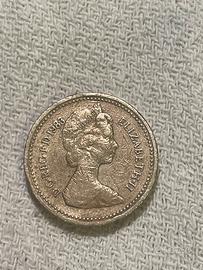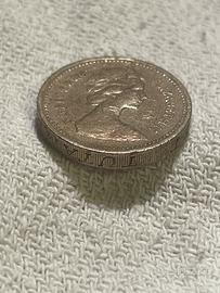 1983 RARA MONETA REGINA ELISABETTA II ONE POUND ERRORE (SOTTOSOPRA) DECUS ET TUT