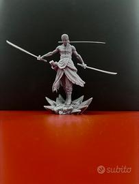 Vendo miniatura alta 15cm di Zoro stampato a resina con dovizia di particolari: in confenzione vengono formite le tre spade da fissare con colla (attack) alle mani e alla bocca (non vengono spedite montete per via della fragilità della miniatura che potrebbe rompersi durante il tragitto.