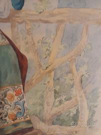 Bel dipinto ad acquarello su carta di fine 1800, di Onorato Carlandi (Roma 1848 – 1939), raffigurante popolana in costume tradizionale, soggetto tipico dell’autore. La cornice è un listello dorato, corredata di vetro dipinto è ottimamente conservato e ideale per collezionisti di cimeli teatrali. Misure: 27,5 x 33,5 cm L’oggetto è in buone condizioni, come da foto.