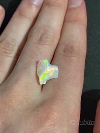 Opale bianco naturale 2.50 ct. Dimensioni 13x6 mm. Provenienza: Australia. In perfette condizioni. Eccellente colorazione arcobaleno: presenta tonalità di rosso, verde, giallo e blu.