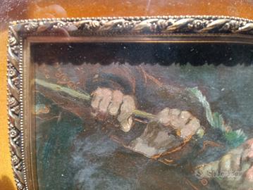 Opera d’arte olio su tavoletta raffigurante un’anziana signora.