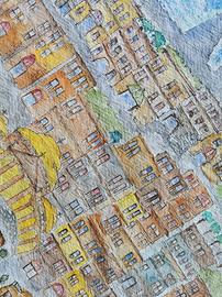 Mappa della città di Napoli, Italia - Opera d'arte originale ad acquerello