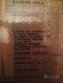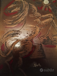 Opera di Giuseppe Viola su lastra d'argento 800% e materiale prezioso rappresentante "il cavallo", cm 18x24 tiratura limitata