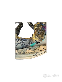 Gloria Campriani è un'artista visiva contemporanea toscana (nata a Certaldo nel 1957) e una delle figure più interessanti della Fiber Art (arte tessile) in Italia. La sua ricerca artistica non è solo estetica, ma profondamente legata alla filosofia, alla sociologia e al rispetto per l'ambiente. Il cuore della sua arte è il concetto di legame. Campriani usa il filo per simboleggiare le relazioni umane, sociali e il rapporto tra uomo e natura. Per lei, tessere non è un atto decorativo, ma un modo per "riparare" o "connettere" realtà frammentate. È una pioniera dell'economia circolare nell'arte. Utilizza filati riciclati provenienti dai distretti tessili (come quello di Prato), scarti industriali, plastica, ma anche elementi naturali e metalli, come il cavo di acciaio di questa opera. Ama lavorare su oggetti che hanno già una storia, come ruote di carro, vecchie cornici o materiali edili, trasformandoli in "cornici narrative". Titolo: Forza della natura. Realizzazione: 2024 Supporto Narrativo: La "ruota di legno" non è solo una base, ma parte integrante del messaggio: rappresenta il ciclo della vita e l'economia circolare. Le scritte a china sulla cornice ("acciaio e cornice in legno", "fili riciclati") servono a certificare l'origine dei materiali, elevando l'oggetto di scarto a opera d'arte. Unicità: Essendo realizzata con materiali di recupero e intrecciata interamente a mano senza telaio, ogni pezzo è un esemplare unico e non replicabile, un elemento che ne accresce il valore collezionistico. Allegato all'opera: catalogo a cura di Luca Nannipieri, critico e storico dell'arte, dedicato all'artista con oltre 80 foto di opere realizzate e catalogate. Titolo del catalogo: TRA ME.