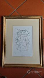 L'opera raffigura uno dei soggetti più iconici e ricercati dell'artista: un volto femminile dai lineamenti eterei e poetici, realizzato con un tratto fluido arricchito da delicati accenni di colore pastello.