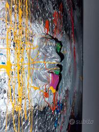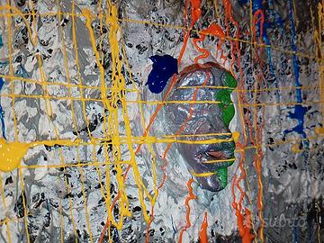 vendo opera materica con maschere apotropaiche fatta a mano 50x70, firmata e autenticata OttO. pezzo unico