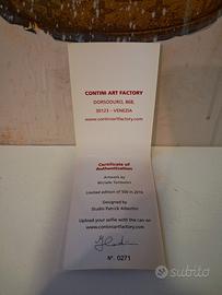 Opera pop Art Factory Contini Venezia in collaborazione con l'artista Michele Tombolini del 2016. L'artista Michele Tombolini è nato a Venezia nel 1963. La ricerca artistica di Michele spazia in diverse discipline, dalla pittura alla scultura, dalle installazioni alle performance. Il suo stile pittorico iniziale nasce da una ricerca introspettiva fortemente caratterizzata da un istinto irruento; lo stile materico è invece ispirato ai grandi maestri del Novecento, da Picasso ai grandi sconvolgimenti della Transavanguardia. In occasione della sua partecipazione con un video a Personal Structures alla Biennale di Venezia nel 2013, Michele Tombolini pone le basi per una svolta orientando la sua ricerca verso un approccio sempre più concettuale e con una maggiore attenzione alle tematiche sociali. Nel 2014 l'artista si trasferisce a Berlino dove realizza Butterfly, un murale interattivo alto 20 metri, inserito nel contesto del progetto internazionale Indelible Marks, volto a sensibilizzare l'opinione pubblica sul grande problema della prostituzione minorile e dell'abuso sui minori nel mondo. Il nuovo percorso artistico di Michele Tombolini è caratterizzato da un approccio all'immagine che si può definire Pop, pur mantenendo un secondo livello di lettura che porta un spiccato interesse per le dinamiche sociali, il cosiddetto Social Pop.
