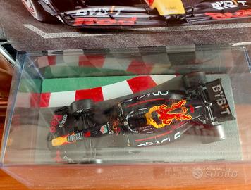 Modellino della monoposto Oracle Red Bull Racing RB19 del 2023, guidata da Max Verstappen. Un Capolavoro di Modellismo in questo imperdibile Die-Cast scala 1:43 che rappresenta la tecnologia ed il design di una delle monoposto dei piloti e delle scuderie piu vincenti ed iconiche di Formula Uno - Scala 1:43. - Dettagli fedeli alla vettura reale. - Carrozzeria in metallo - Abitacolo dettagliato - Basetta personalizzata che riproduce un cordolo del circuito custodita da teca crystal. - Fascicolo allegato che ripercorre le gare e le indimenticabili stagioni. Nuovo, ancora sigillato come da foto.