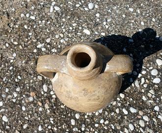 • orcio/brocca in terracotta originale dell’Ottocento, realizzato artigianalmente. Il pezzo è integro, con due manici e un collo alto. Ottimo come oggetto decorativo da interni rustici o giardino.