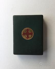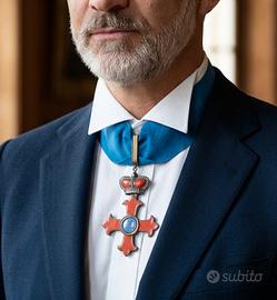 Set completo dell'Ordine Militare di San Giorgio d'Antiochia, grado di Commendatore (o Gran Ufficiale). La croce è caratterizzata dai bracci gigliati smaltati in rosso e dal medaglione centrale con il motto "Pax et Libertas". Il set include la miniatura da occhiello e il nastro originale in seta azzurra. Scatola originale S. Johnson in ottime condizioni. 🎖️✨