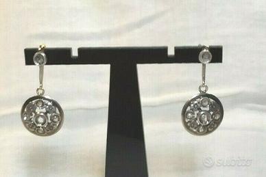 Orecchini Antichi in oro basso titolo (parti 18 ct) e argento con diamanti taglio a rosetta per 1.5/2.0 ct approx